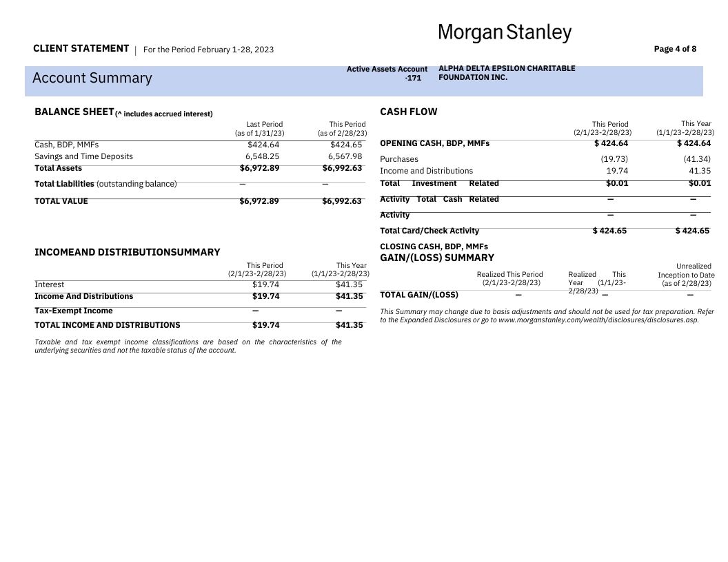 Q1 2023 Financials Statement House Sale Proceeds Investment Account Building Trust Proceeds Investment Account Posted in Events ← 2022 ADE Grant Recipients2023 Annual Meeting →